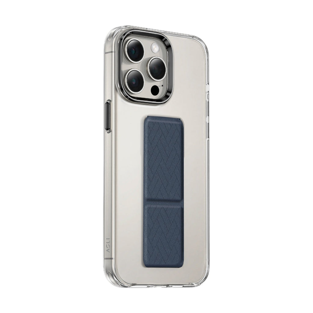 Asli Global iPhone 15 Pro Leather Grip Stand | Dark Blue