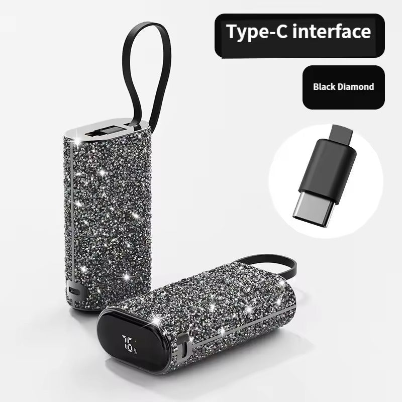 Asli Global 10000mAh Power Pod Luxe Shining Diamond Power Bank with Built-in Cable | Black
