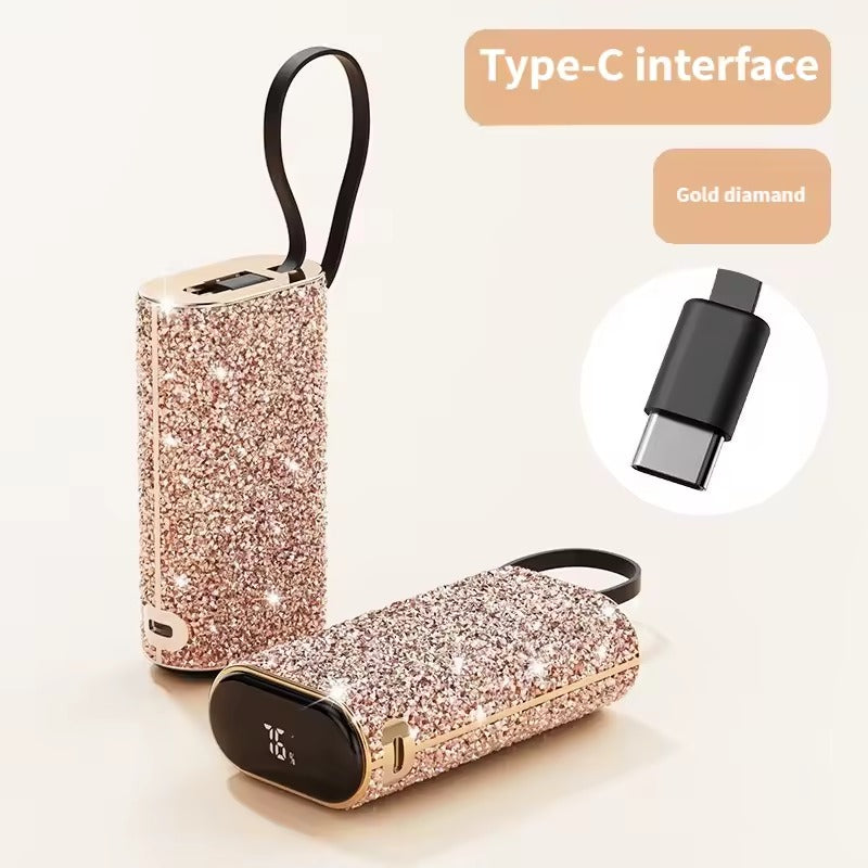 Asli Global 10000mAh PowerPod Luxe Shinning Diamond Power Bank with Built in Cable | Gold