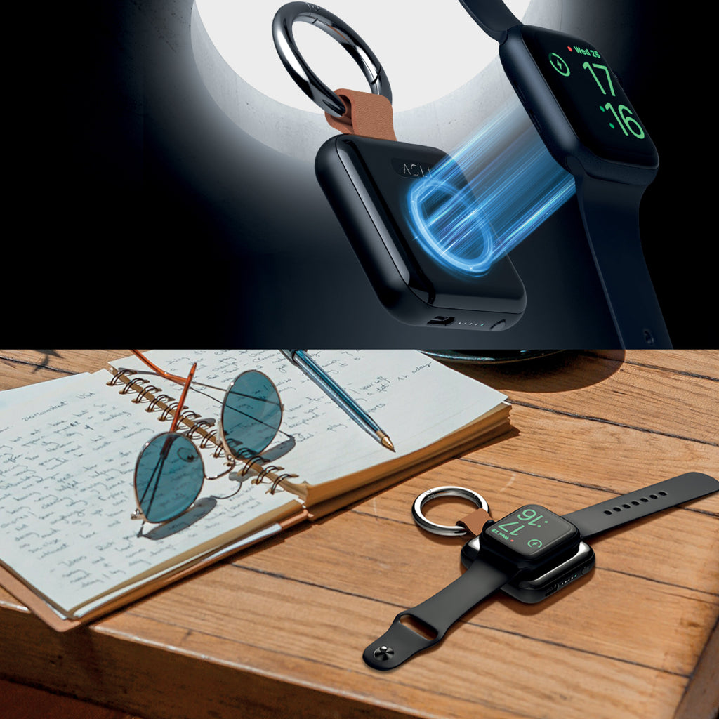 Introducing the PowerVolt Watch Series, a stylish and portable power solution for your Apple Watch. Featuring a keychain clip, battery indicator lights, and built-in safety protections, this compact power bank is the perfect companion for on-the-go charging.