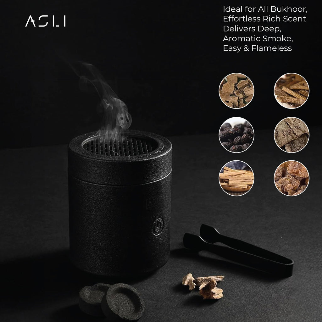 🕯️ Asli Global Amberiq Essence Electric Bakhoor Burner with Rotating Flip | Black