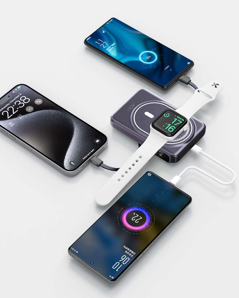 Ideal For: Tech-savvy individuals and travelers who need a comprehensive, fast, and compact power bank capable of charging multiple devices simultaneously, including smartphones, earbuds, and smartwatches.