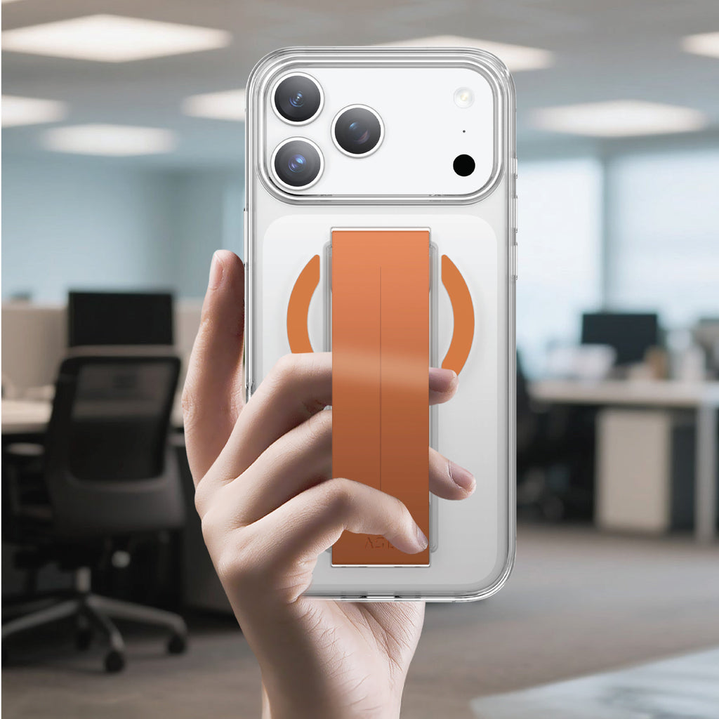 🛡️ ASLI MagTrox Siliox Grip Transparent MagSafe Case for iPhone 17 Pro | Orange Titanium