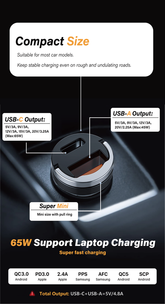 Sleek and Modern Exterior: The charger's sleek and modern design enhances your vehicle's interior, combining durability with a stylish futuristic look.