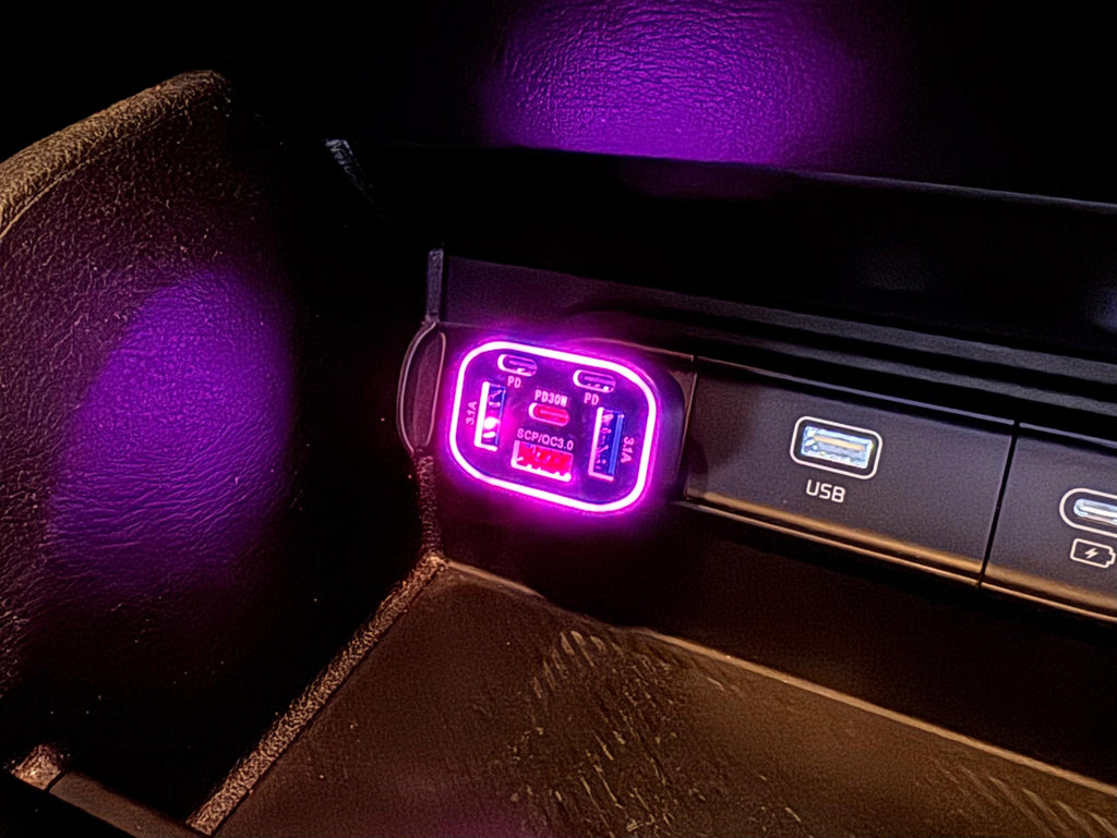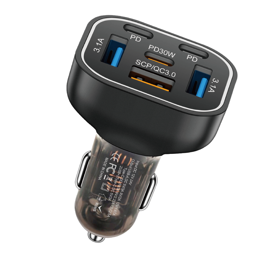 Asli Global PrimusCharger Q 63W 6-Port Transparent Car Charger with Colorful Gradient
