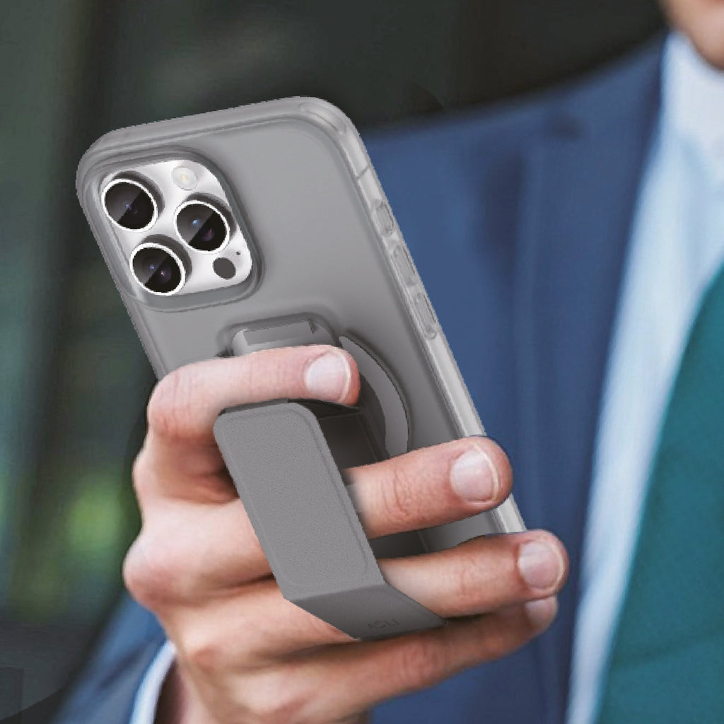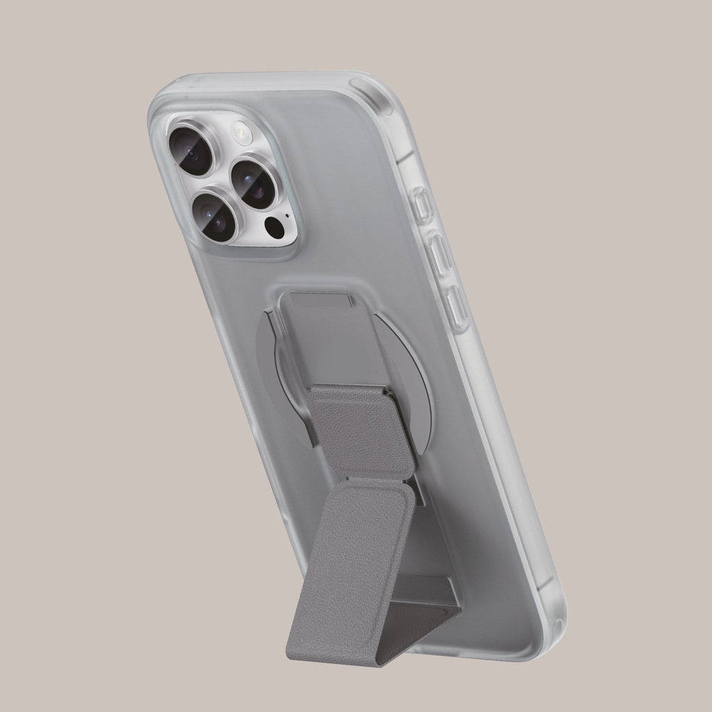 Asli Global Gravitas iPhone 15 Pro Max MagLeather MagSafe With Grip & Stand Case | Gray